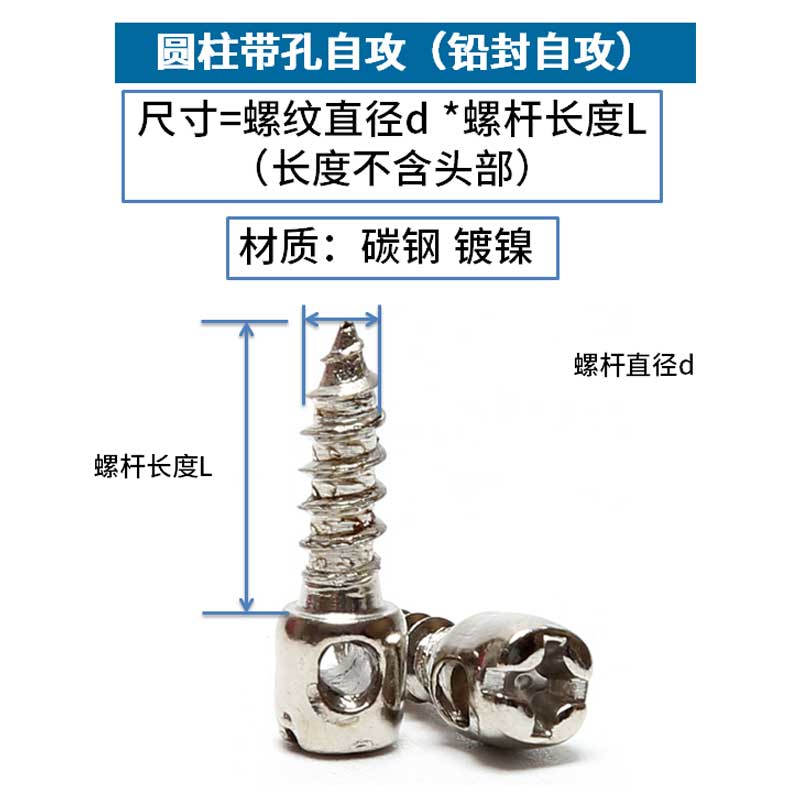 M4 nickel plated electric meter case fitting self-tapping screw cylindrical with hole self-tapping lead sealing screw 7L