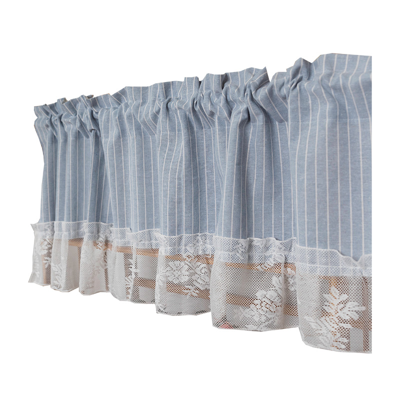 Blue striped lace short curtain Coffee striped lace short curtain