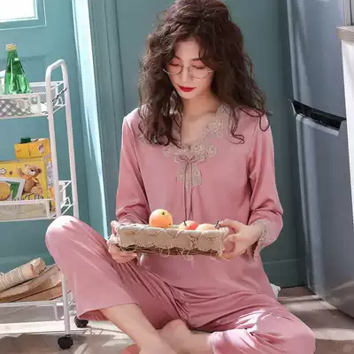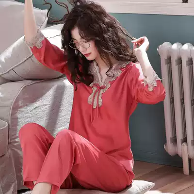 Spring and Autumn silk pajamas women's long-sleeved sexy cute pullover lace loose suit Silk mulberry silk home clothes thin