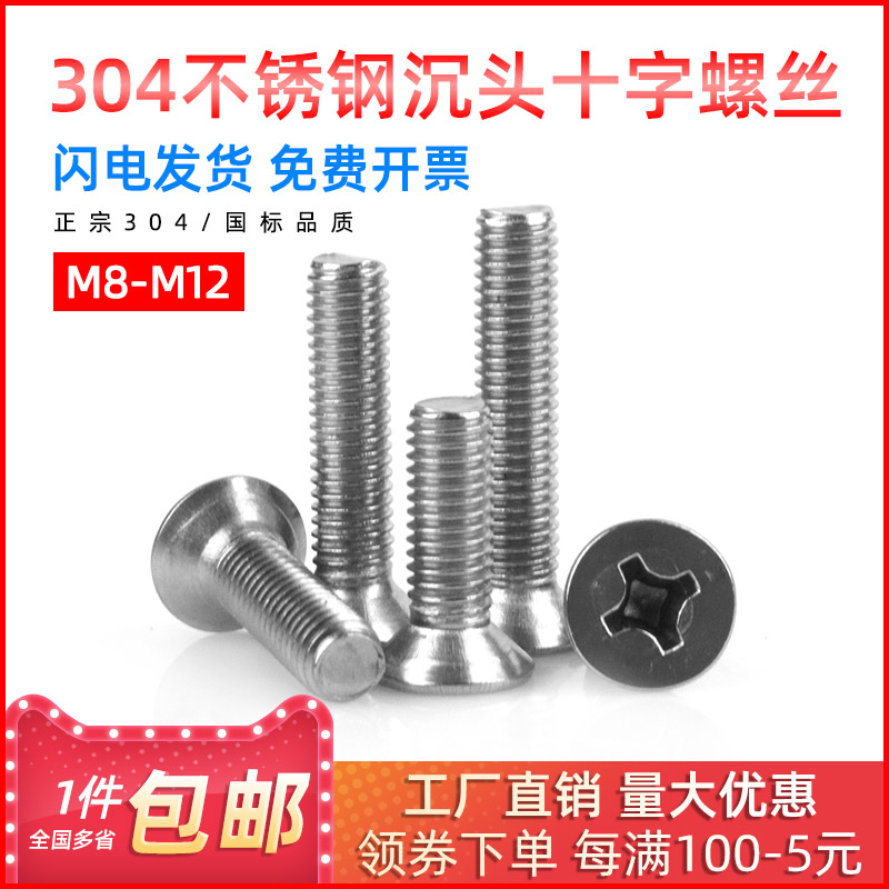 304 stainless steel screw countersunk head cross screw flat head screw screw flat head M8 M10M12
