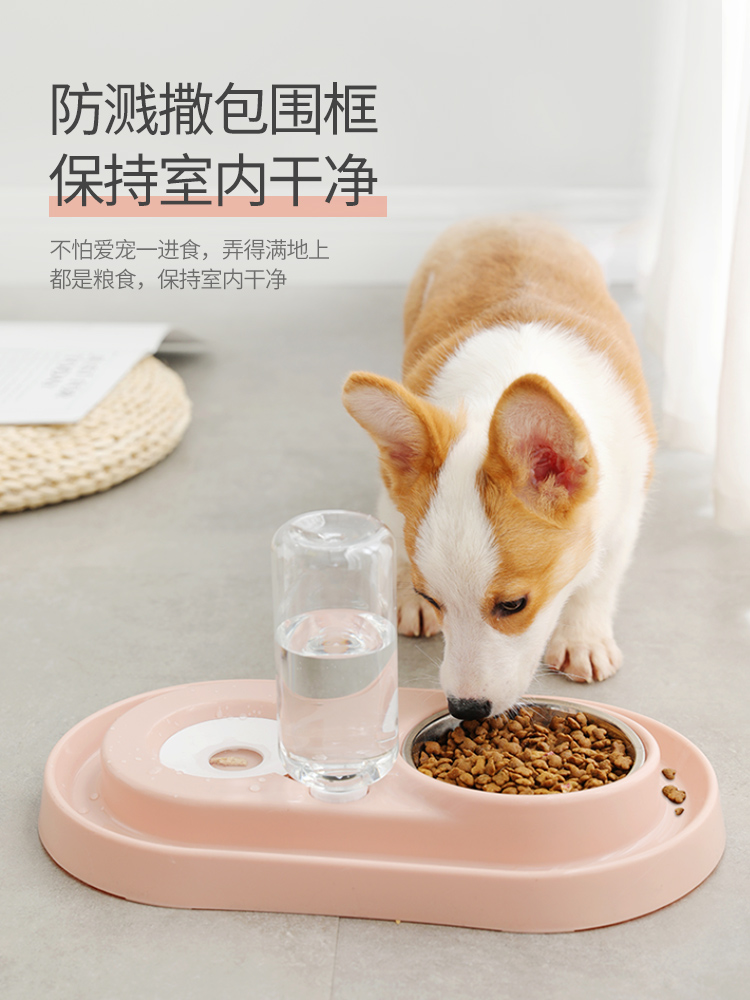 Dog basin, cat bowl, cat double bowl, automatic drinking water, small teddy dog, eating and drinking, dual-use cat bowl, feeding dog and cat basin