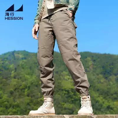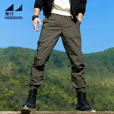 Thick plus velvet nine-point tie pants men's autumn and winter outdoor warm sweatpants navy blue loose drawstring casual pants