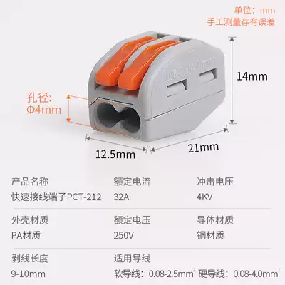 Quick terminal block household one-in-one-out wire extension cord electrical wiring connector free of Tape 2 holes