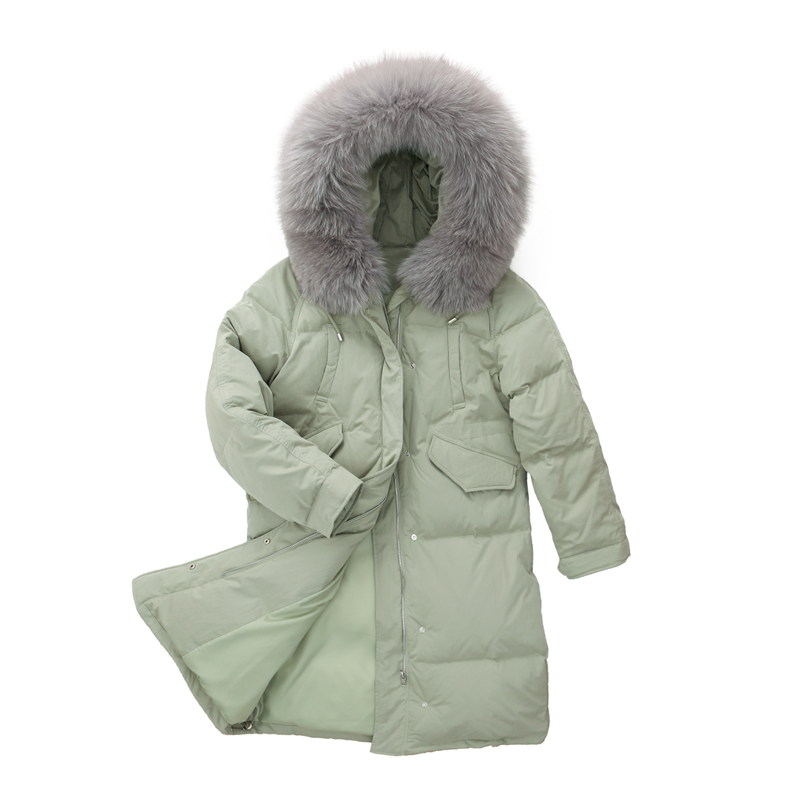 Limited 850 Korean version of big fur collar loose down jacket for women's medium long version over knee long version thickened Pike jacket