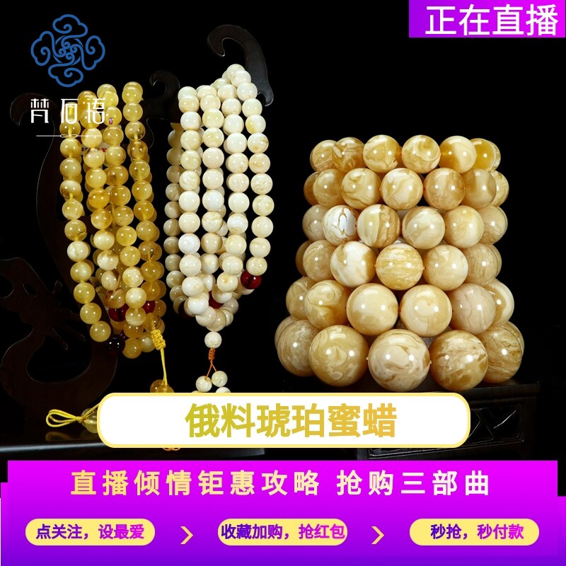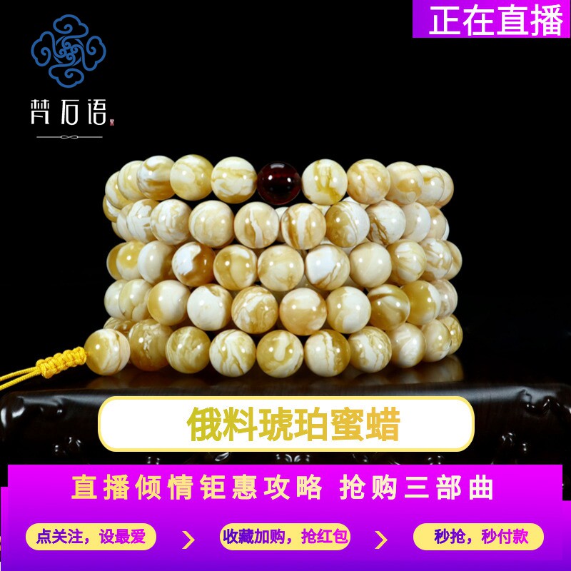 (Sanskrit) pure natural Russian amber beeswax 108 beads sweater refining tiger leather pattern chicken oil yellow hand string 2