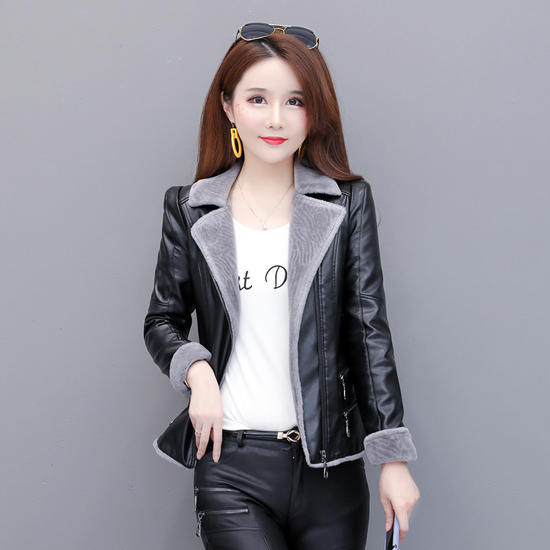 Henning fur integrated coat female lamb suede 2021 new winter real leather jacket short and velvety thickened leather garment