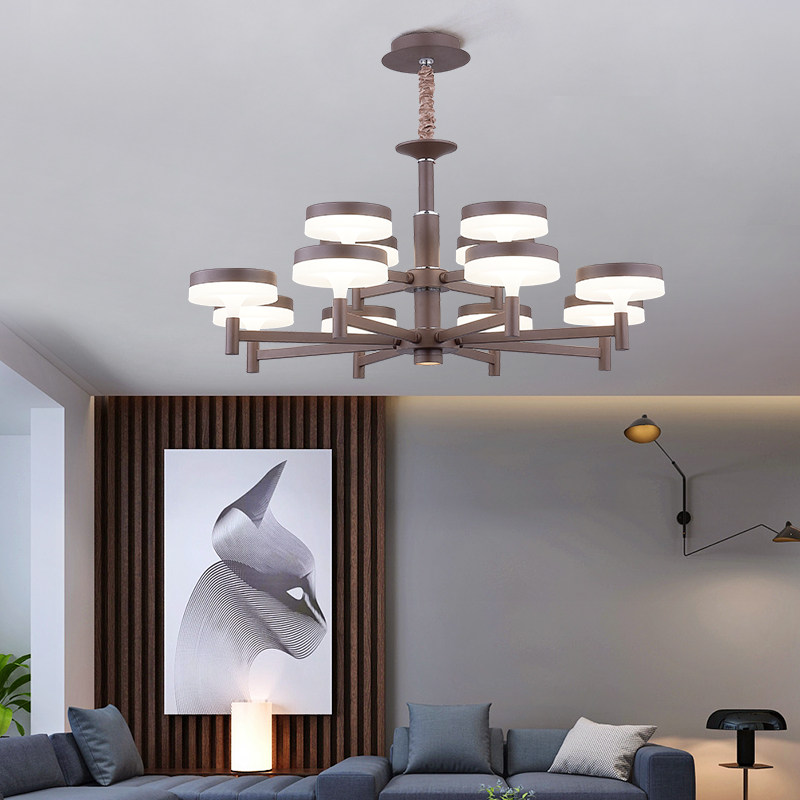 The light and luxurious chandelie of the curry living room