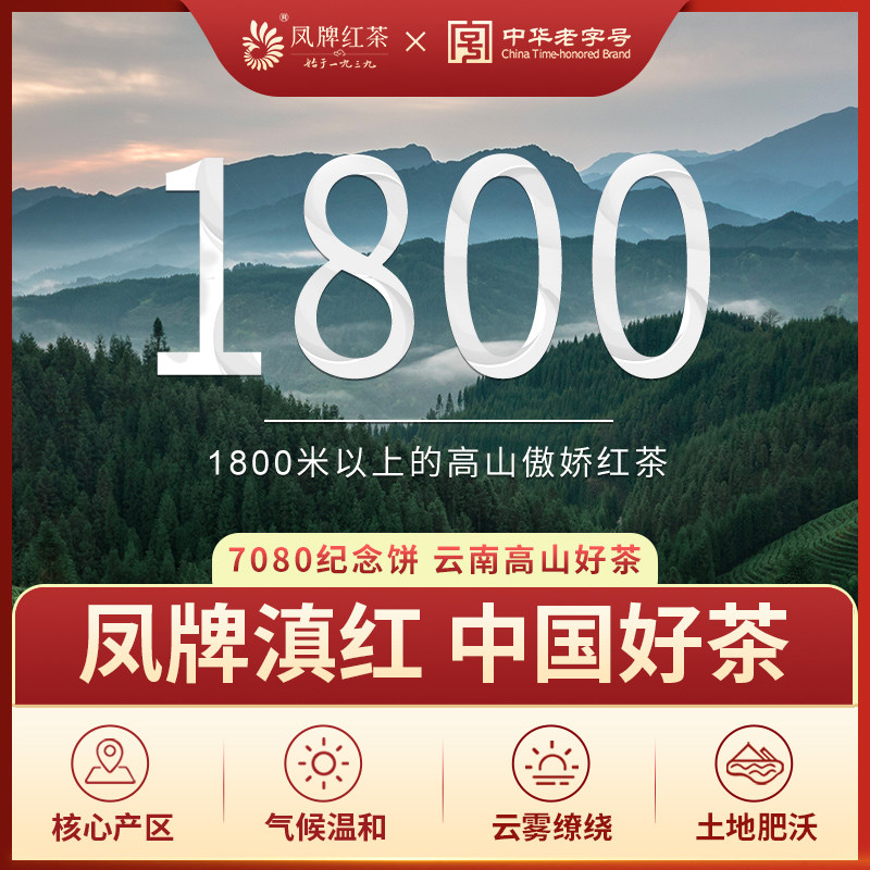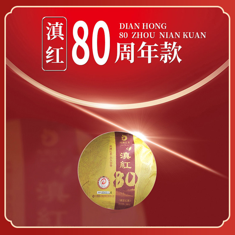 Feng brand tea Yunnan Pu'er raw tea cake Dianhong tea cake 7080th anniversary cake gift gift box 800g