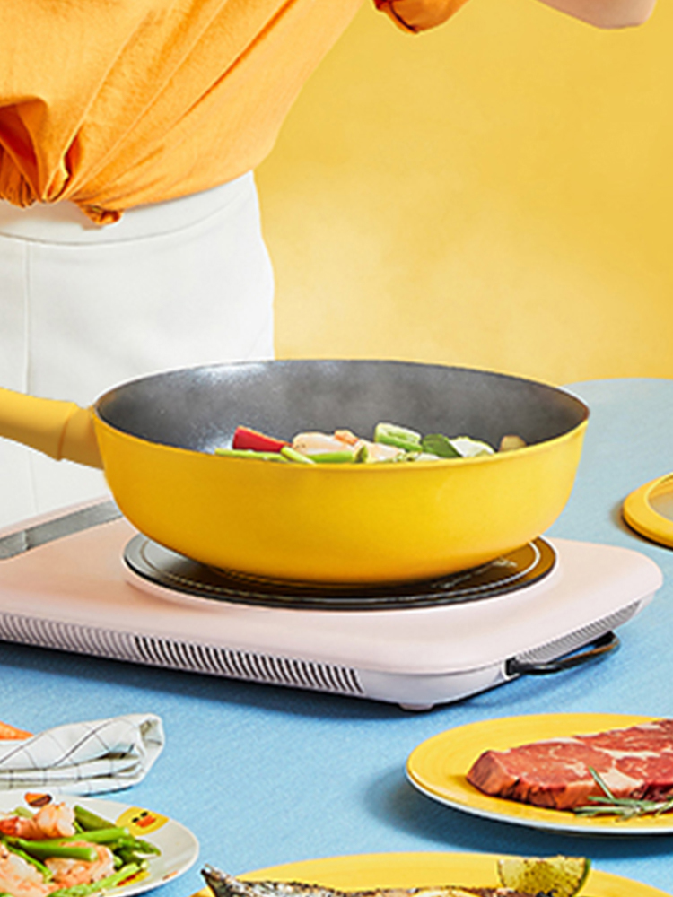 Jiuyang line joint non-stick pot Maifan stone-colored frying pan flat-bottomed household frying pan induction cooker gas stove kitchen utensils
