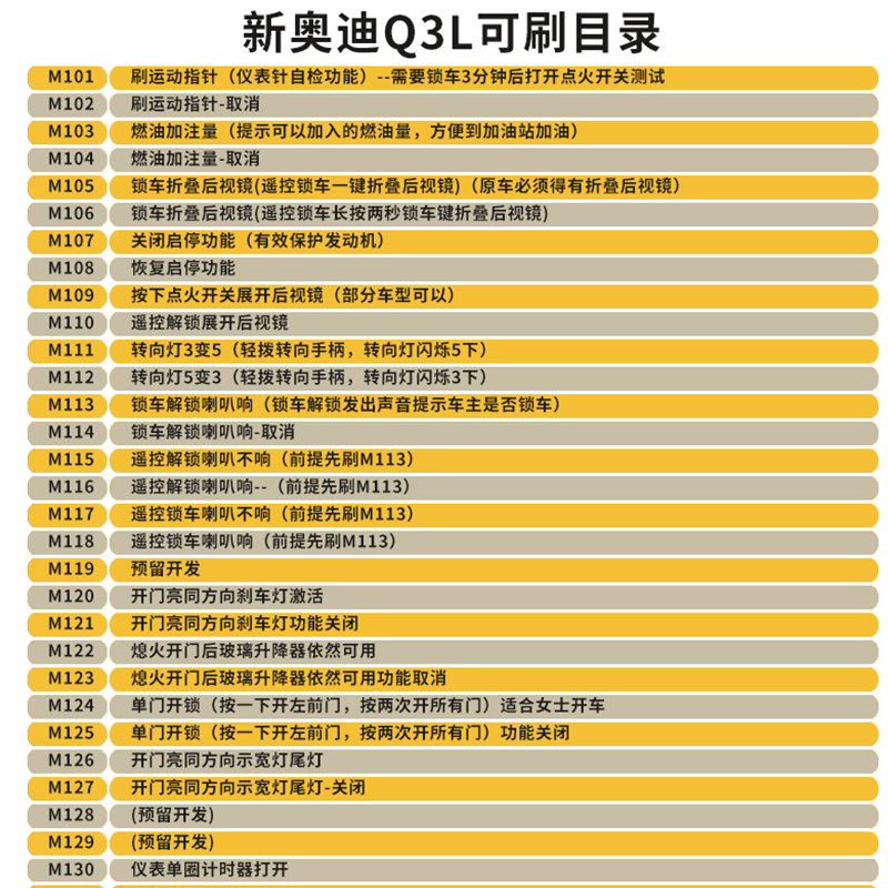 Audi Q3L brush hide function motion pointer turn off the start-stop lock car unlock the horn sound direction light Three-to-five