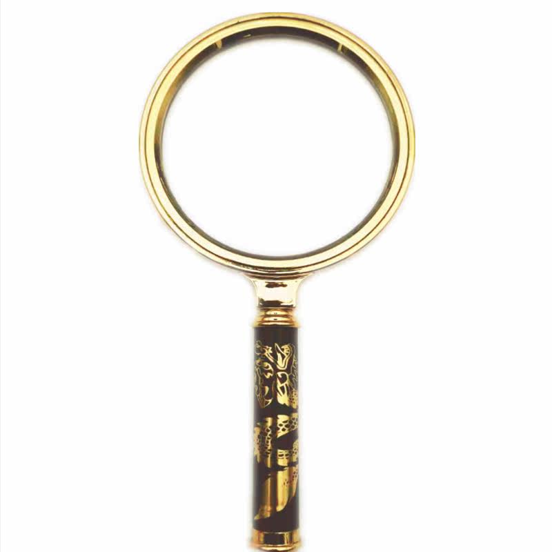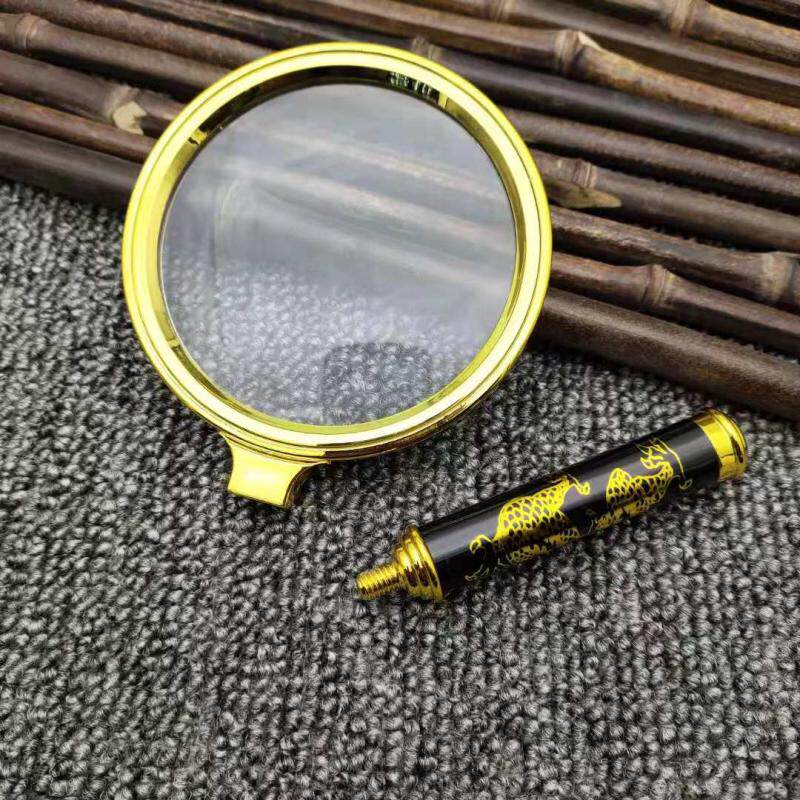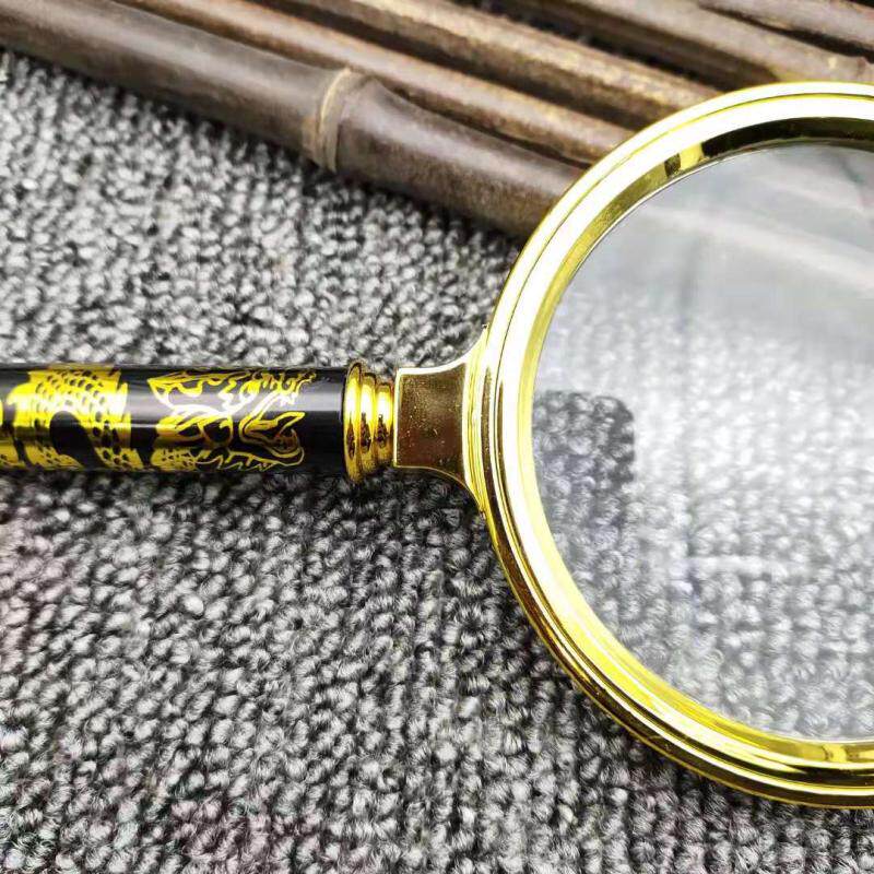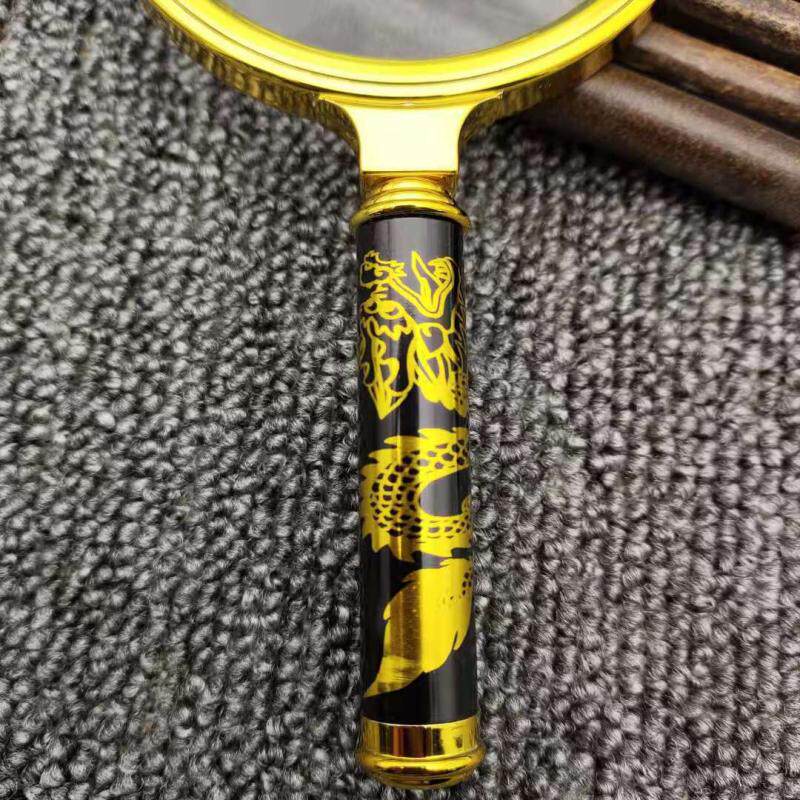 Large number of glass lenses Magnifying glass gilded sculpted dragon handle 90mm enlarged mirror elderly reading handheld optical magnifier