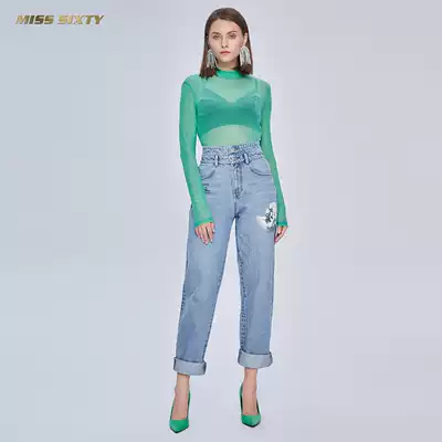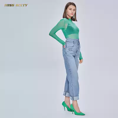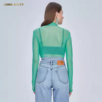Miss Sixty letter hot drill half high collar slim slim net gauze base shirt long sleeve top female