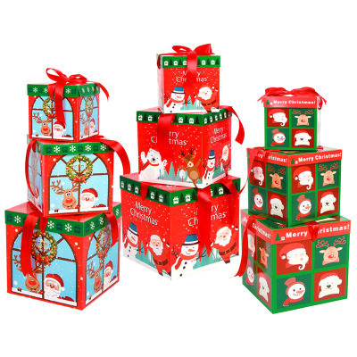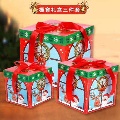 Christmas decorations color gift box three-piece set Christmas tree furnishings window shelves Christmas gift box
