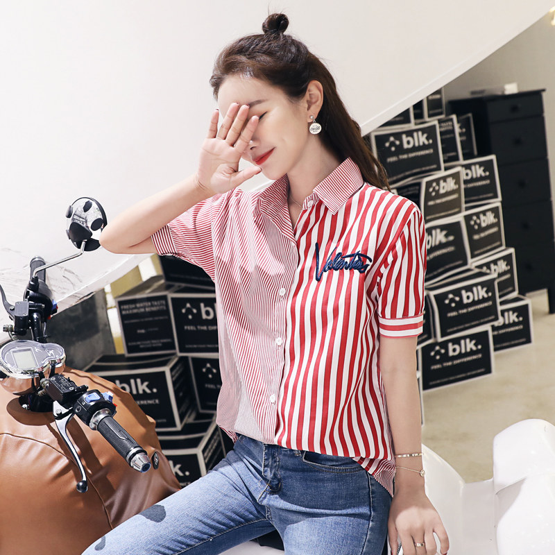 Striped shirt women's summer 2021 new Korean version loose long-sleeved top design sense niche short-sleeved shirt tide