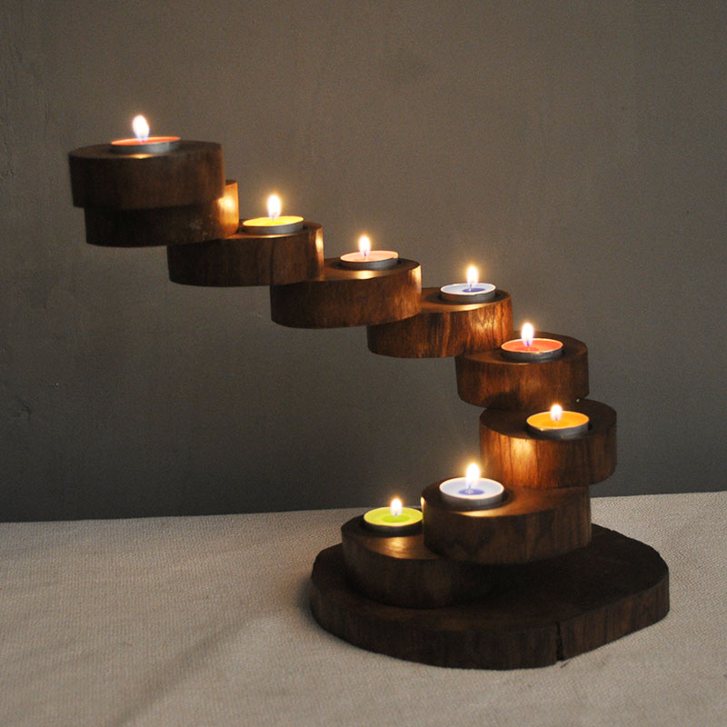 Thailand solid wood candlelight candlelight dinner props romantic Western food decoration retro creative multi-layer rotating candlestick fittings