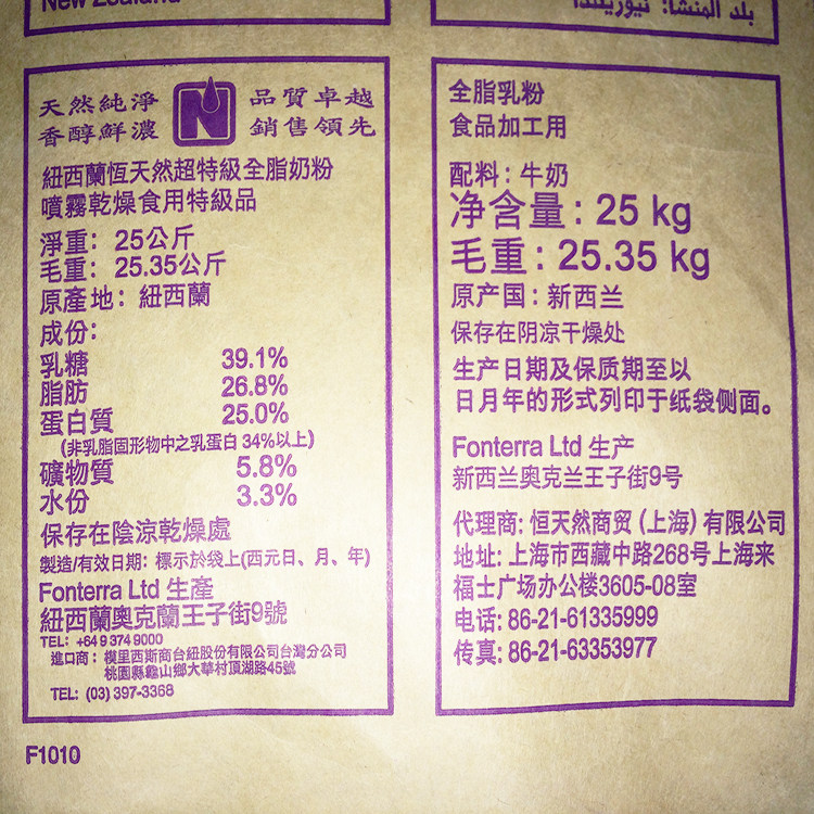 New Zealand whole milk powder 25kg Fonterra NZMP imported milk powder West point water large packaging baking raw materials commercial