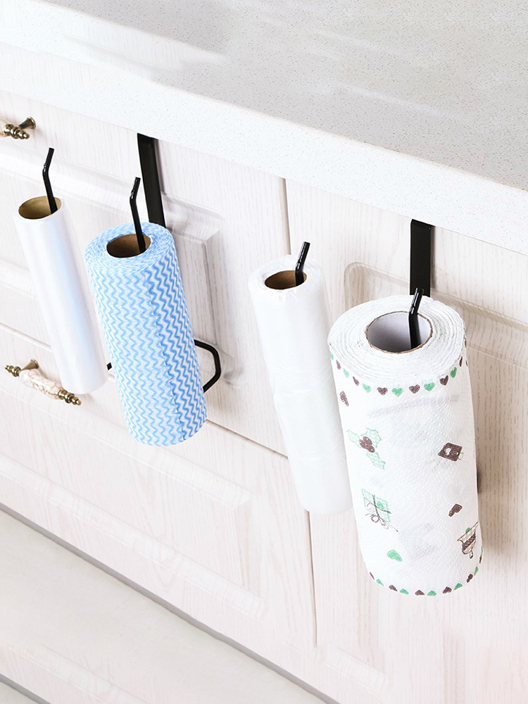 Integral cabinet door hanger Nail-free paper towel rack Rag hanger Double row cling film shelf Hole-free kitchen storage rack
