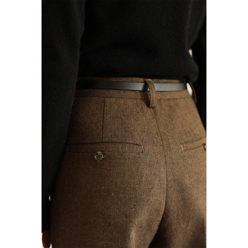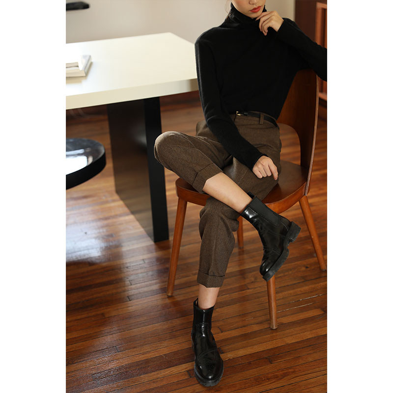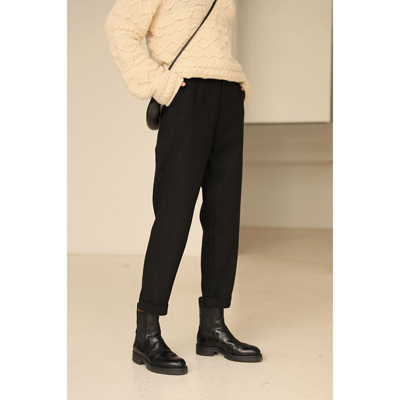 Miss Hatooth Chen Aijia autumn new products in England show thin woolen trousers straight mid-waist loose nine-point robe pants