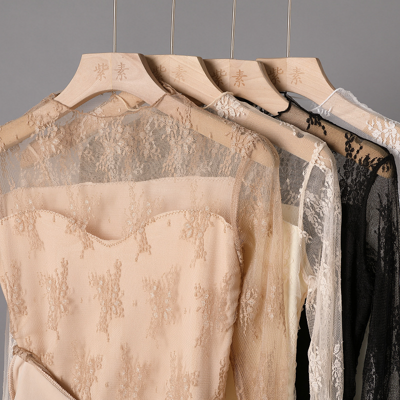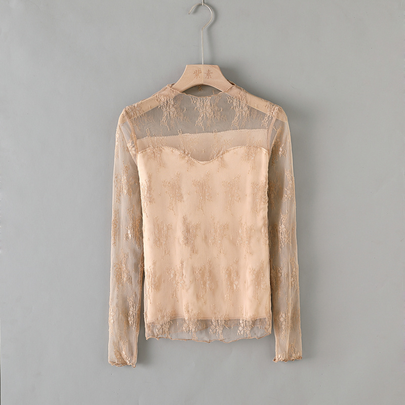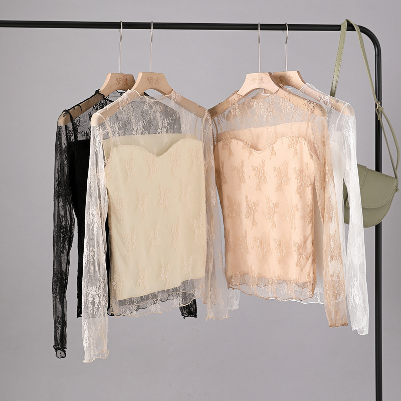 Plush thickened lace long-sleeved mesh bottoming shirt 2022 spring and autumn new Korean style sexy top women - Taobao