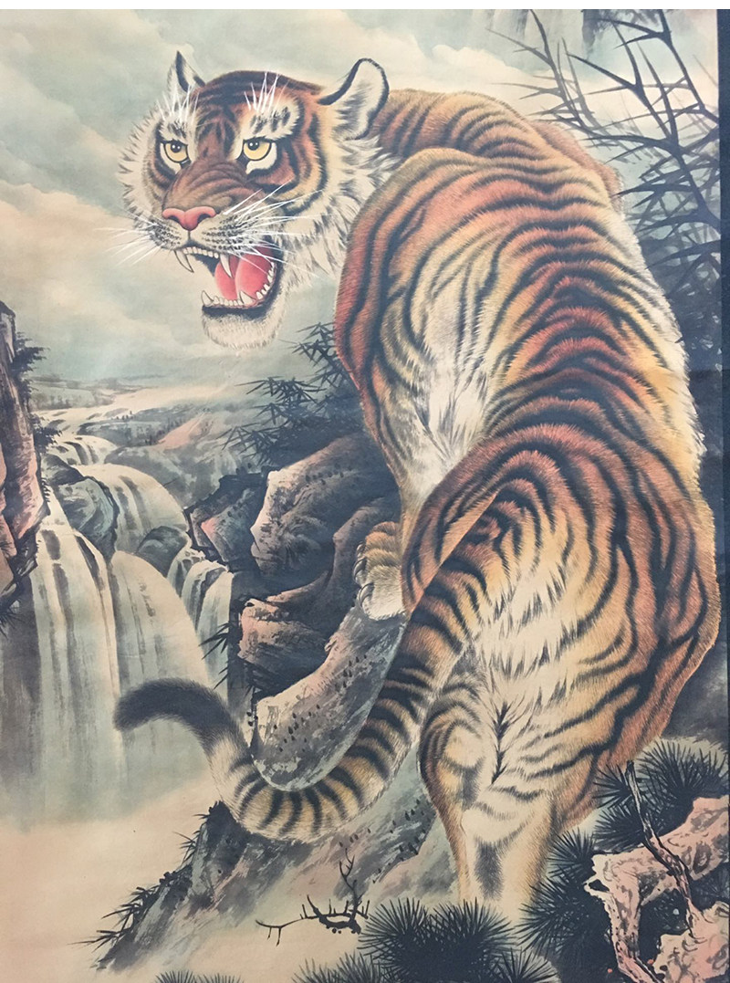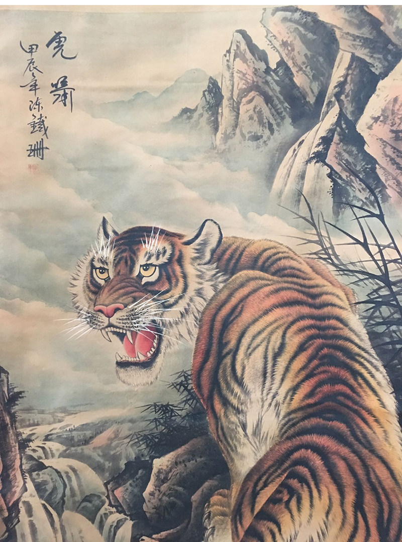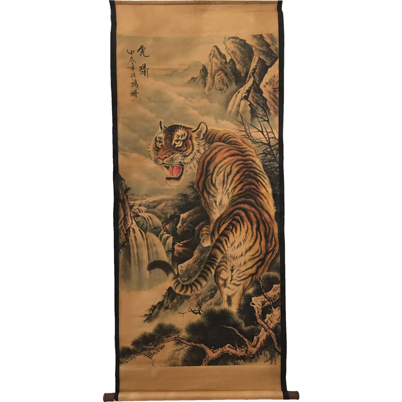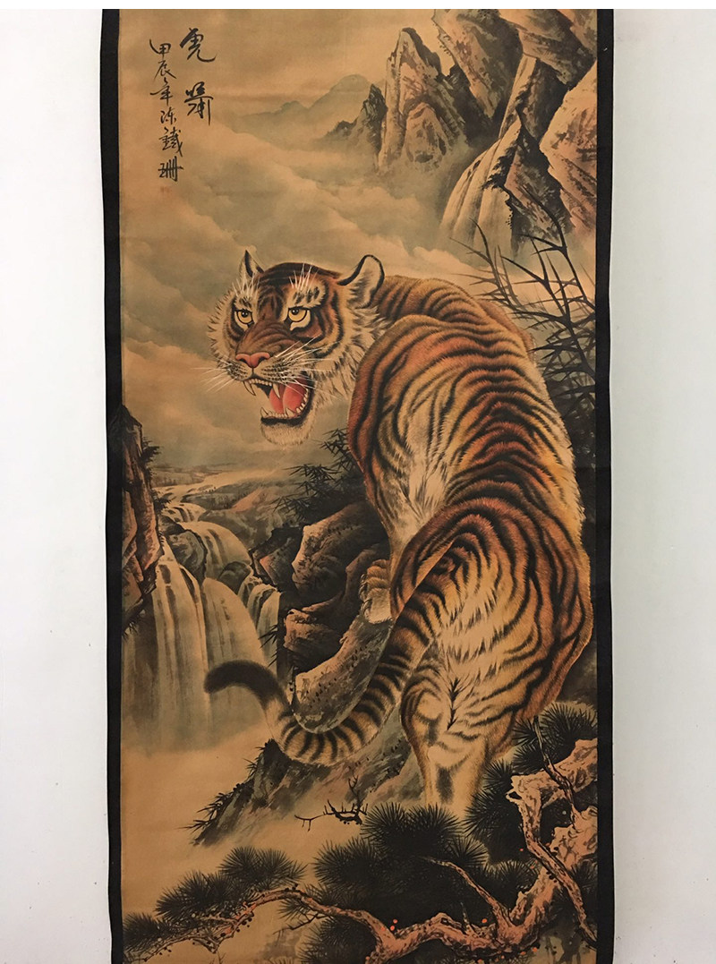 Antique making old name herringbone painting ancient painting country painting Chinese painting hall painting living room office decoration painting hanging painting uphill tiger painting and calligraphy