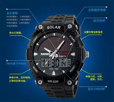 Sports watch men's outdoor men's watch waterproof light energy watch radio wave Solar watch male students trend black technology