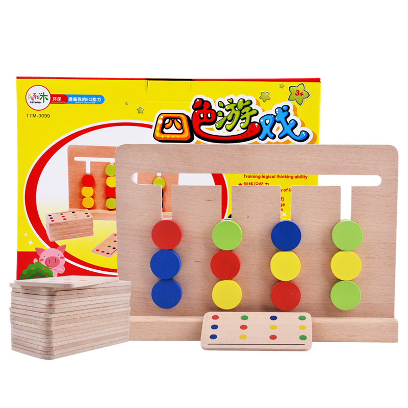 Wooden four-color game chess 3-6 years old baby Montessori brain power development children's educational logical thinking training toys