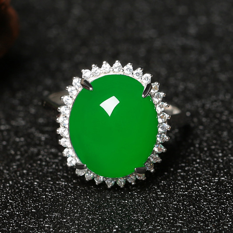 Natural Ice Seed Green Jade Medullary Ring Alive s925 Pure silver Manau Ring Temperament Woman EMERALD COLOR ADJUSTABLE-Taobao