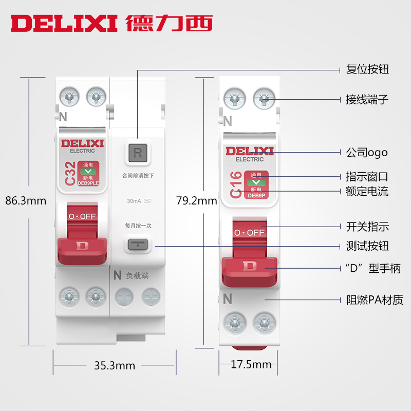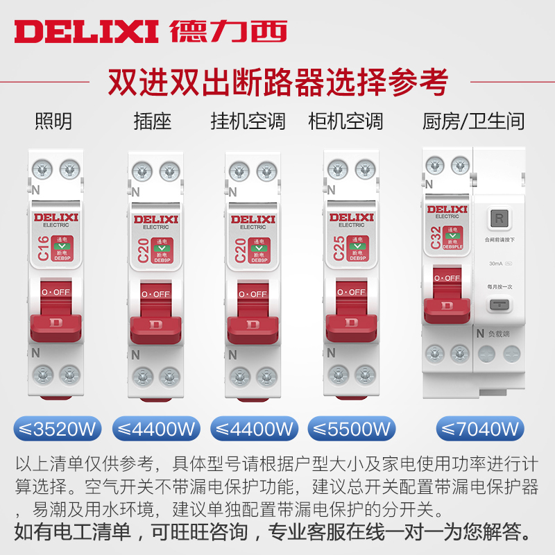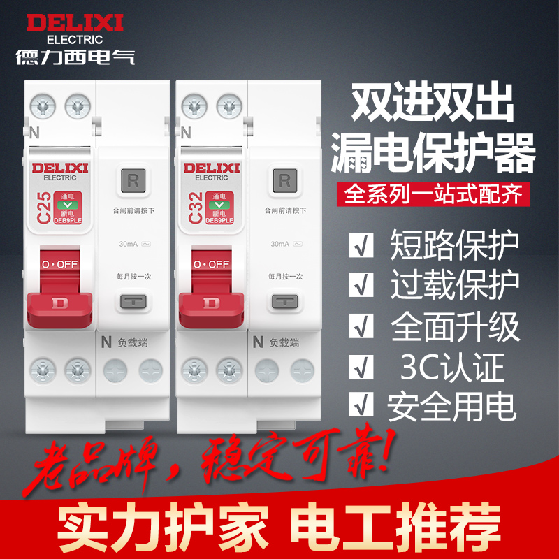 Delixi circuit breaker 1P N 40A phase neutral double - in dual - out total open leakage protection circuit breaker