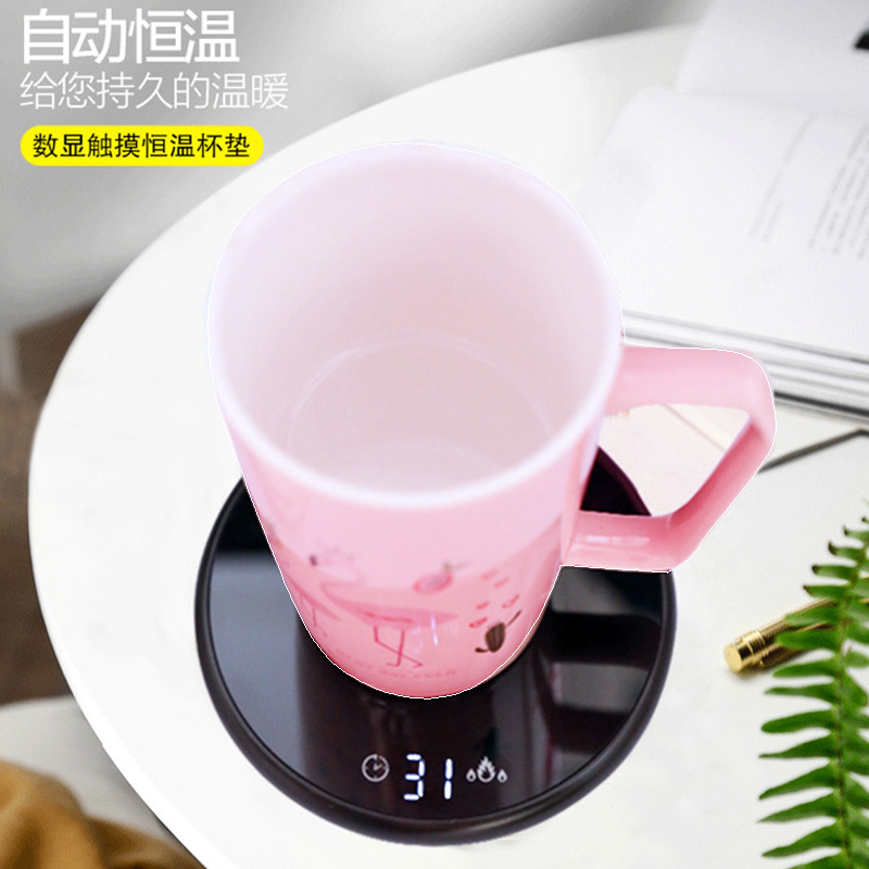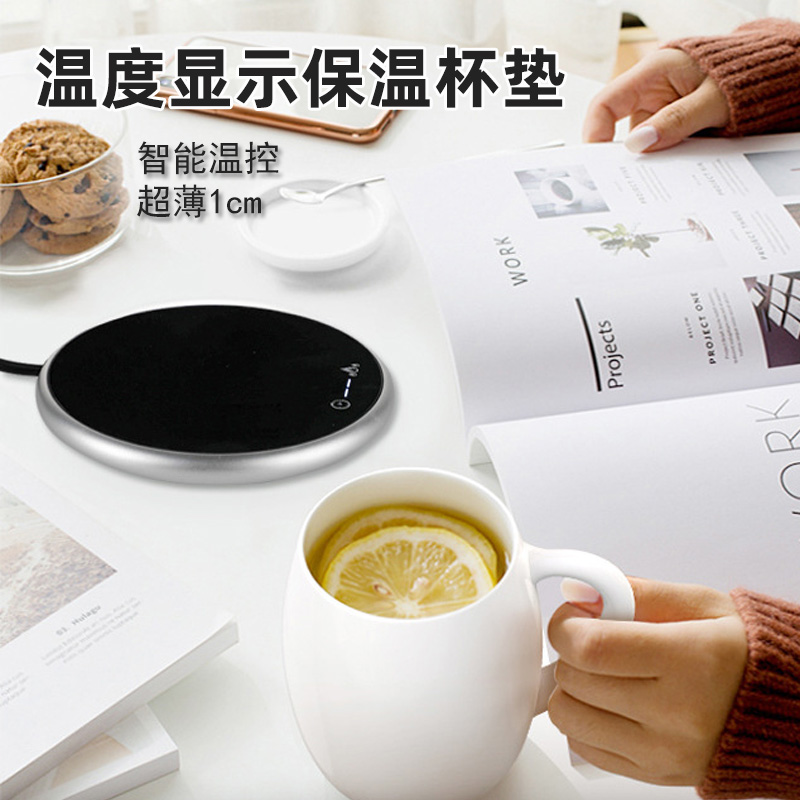 Office worker drinking cup thermos smart temperature control touch screen display ultra-thin 1cm desk heating thermostatic coaster