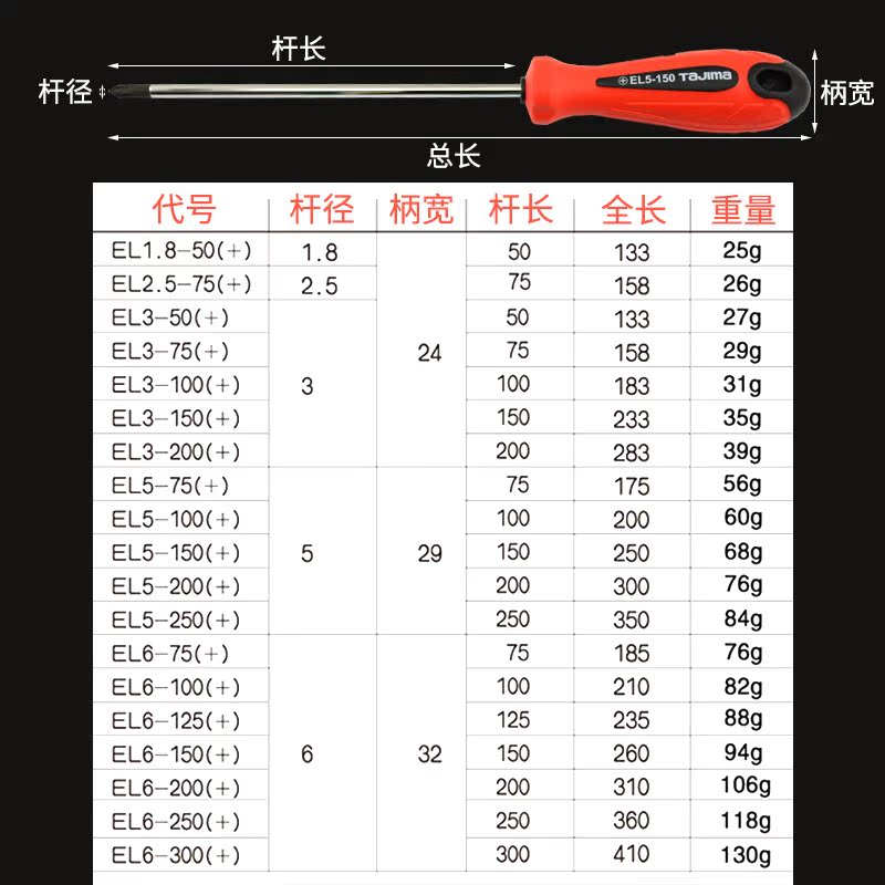 TaJIma Tian Island screwdriver EL series cross I screw driver Plum Opener With Magnetic Screw Driver for Home Repair