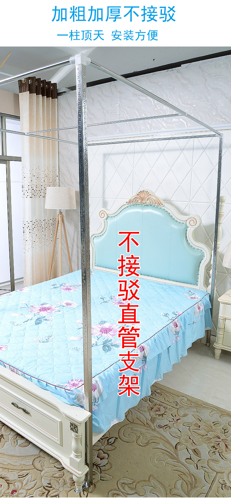 Square tube without splicing straight tube four-column mosquito net court landing 1 5 meters 1 8m2 mosquito net bracket rod thickened thickened