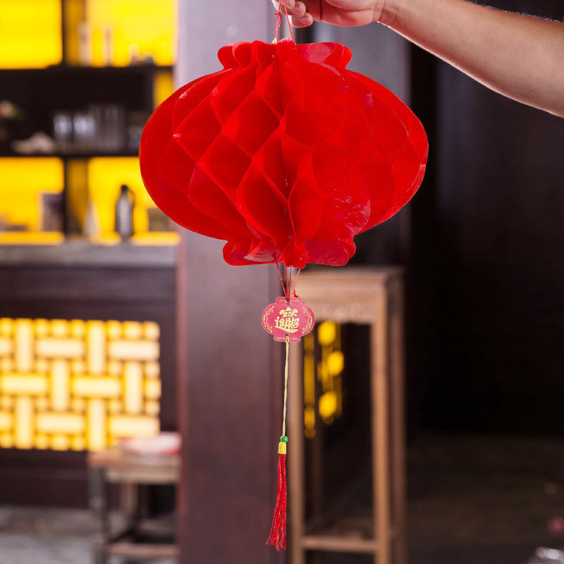 New Year Paper Lantern Waterproof Outdoor Red Lantern Folding Holiday Pendant Suspended Ceiling Decoration Celebration Hotel Festive Little Lantern