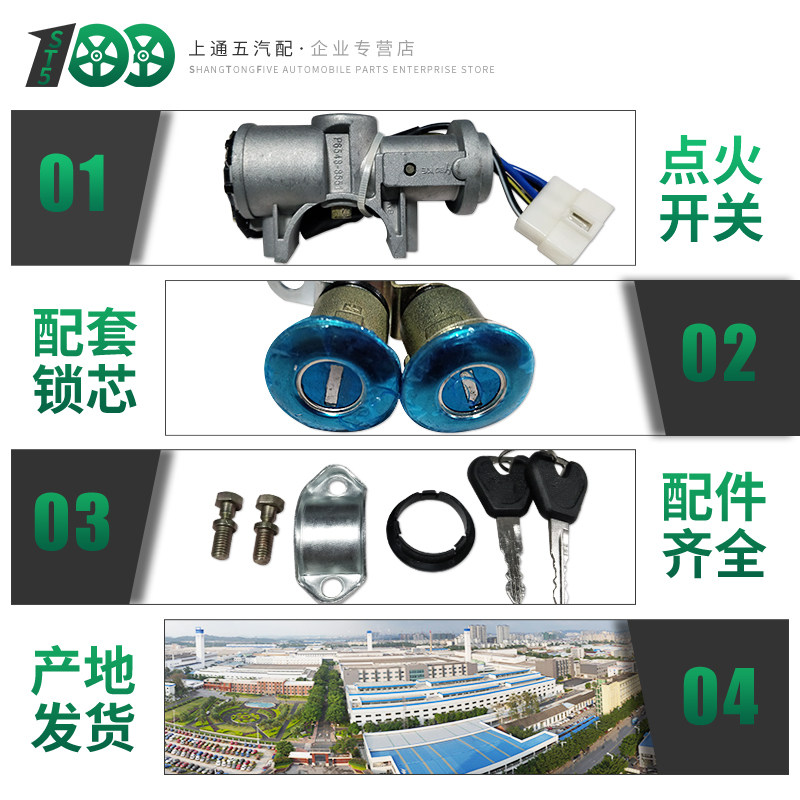 Suitable for Wuling Light 6376 6400 full car lock cylinder assembly ignition switch with steering lock key key