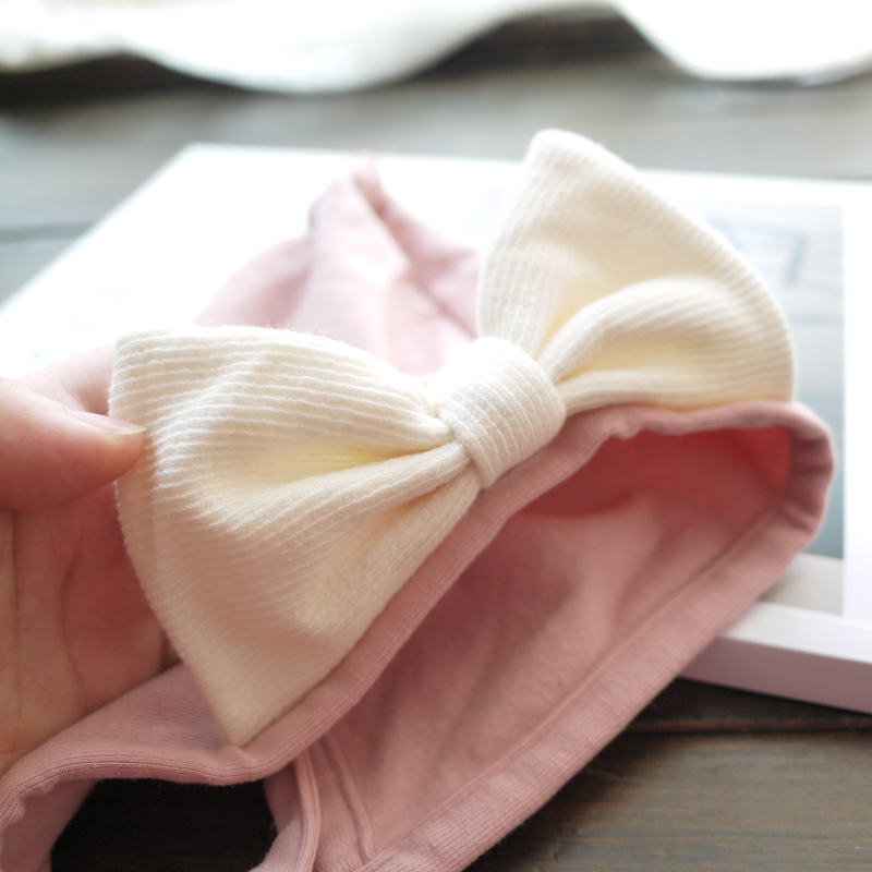 South Korean baby autumn and winter cute female baby pink butterfly knot tire cap pure cotton princess tip lacing elf hat