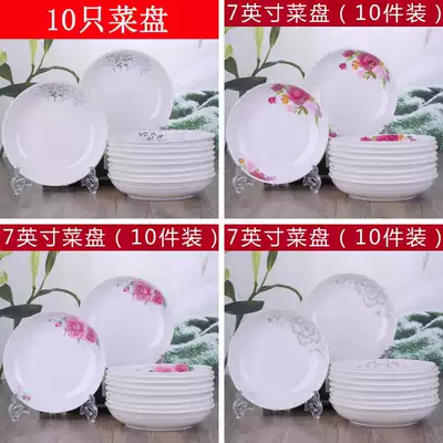 10 plates Chinese creative ceramic disc plate plate plate plate plate can be microwave oven soup plate household Bowl plate tableware