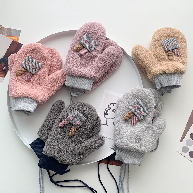 Japanese style thickened warm winter cute Korean student mittens female ins cartoon soft girl riding plus velvet male