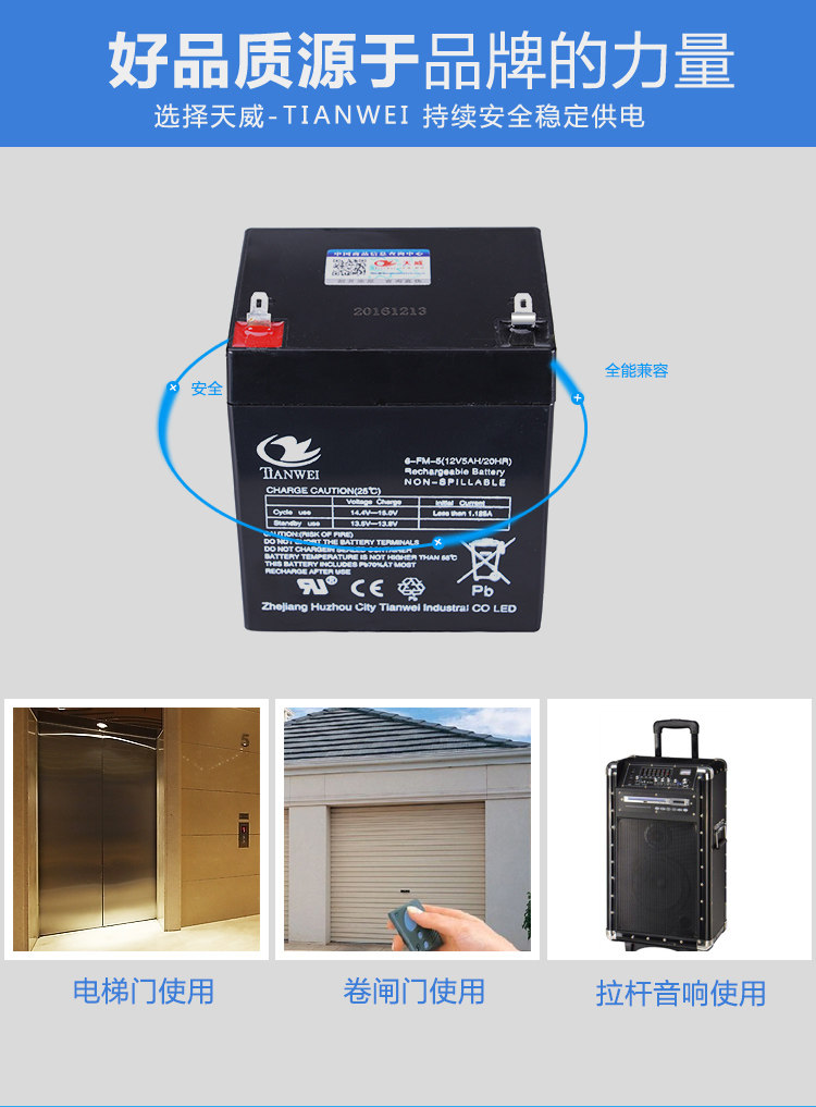 12V5AH electric roll brake roller shutter door pull-lever sound security fire 12V7 lift controller accumulator battery