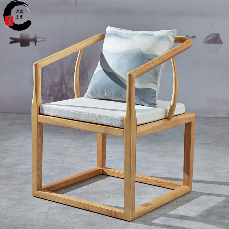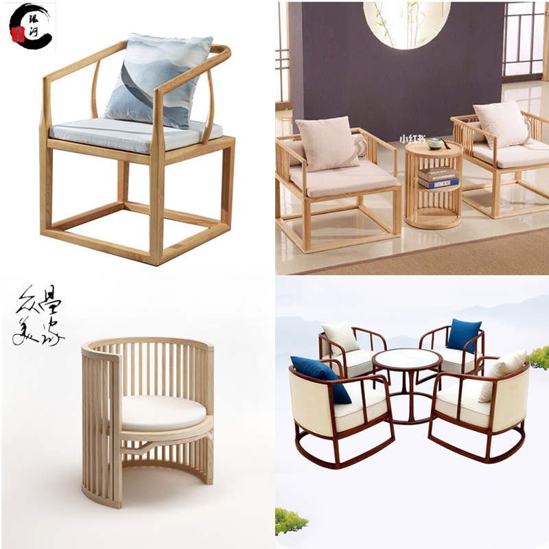 New Chinese solid wood dining chair single sofa chair Hotel Club simple negotiation table and chair combination sample house display center leisure chair