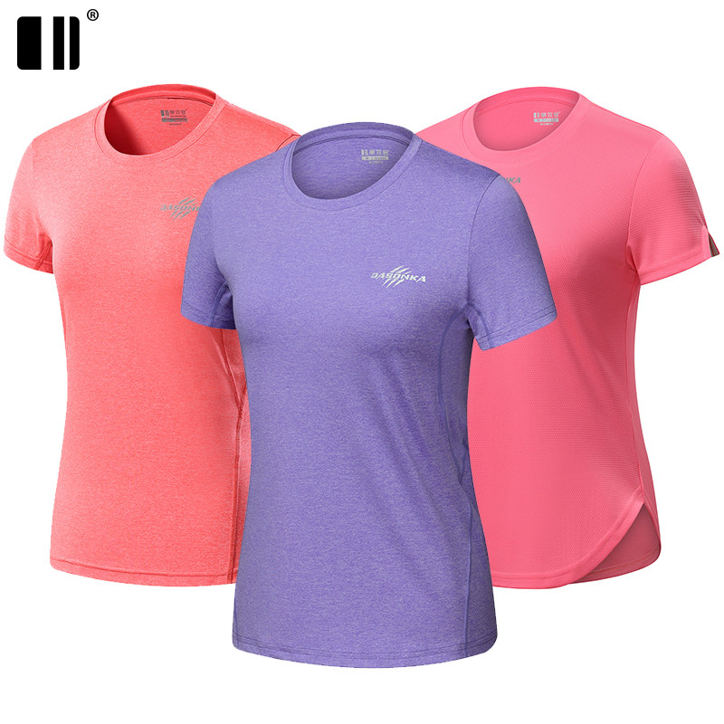 Single and double summer women's sports T-shirt short sleeve quick-drying running suit crew neck top large size loose fitness clothing
