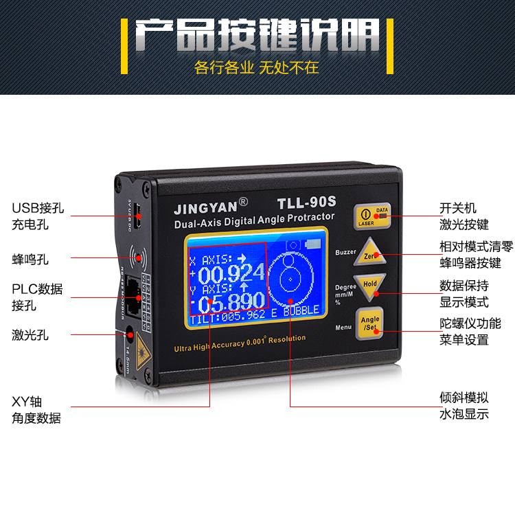 Jingyan laser level electronic angle meter with magnetic high precision 0 005 dual-axis digital display inclinometer TLL-90S