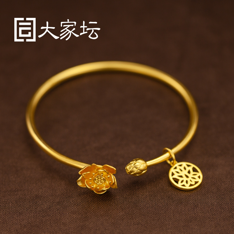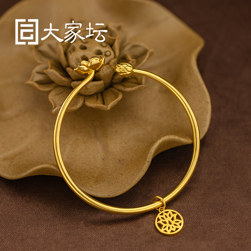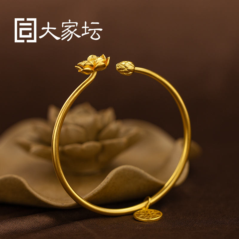 Everyone's altar jewelry ancient law lotus rhyme gold open bracelet simple elegant lotus solid bracelet pure gold 999