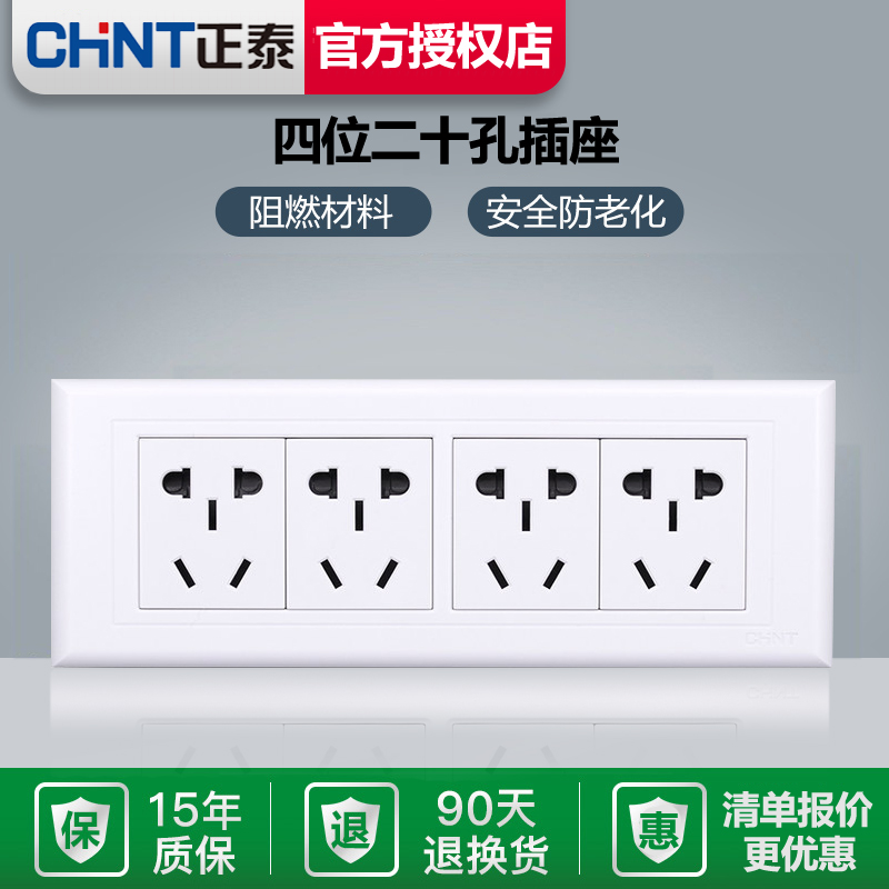 CHINT switch socket 5G series four-position four-joint twenty-hole panel porous socket Four-plug socket twelve-hole plug