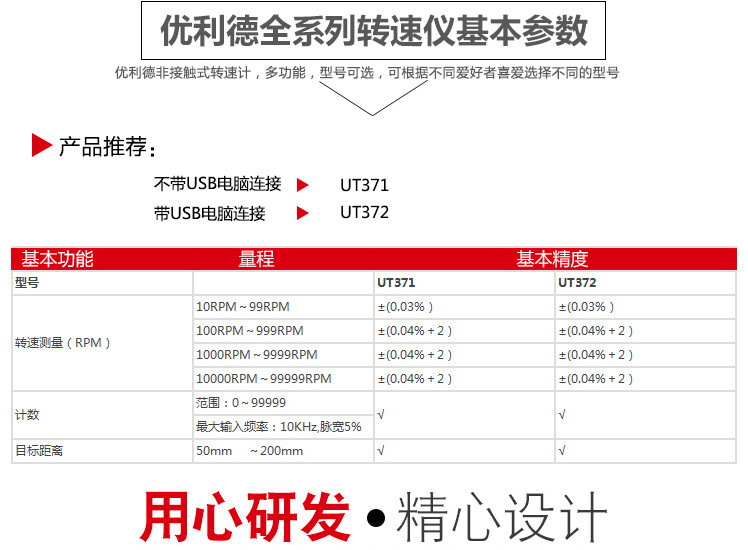 You Lide UT372 laser tachometer UT371 non-contact tachometer high-precision photoelectric speed detector