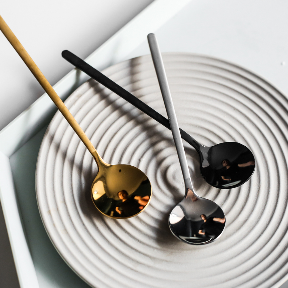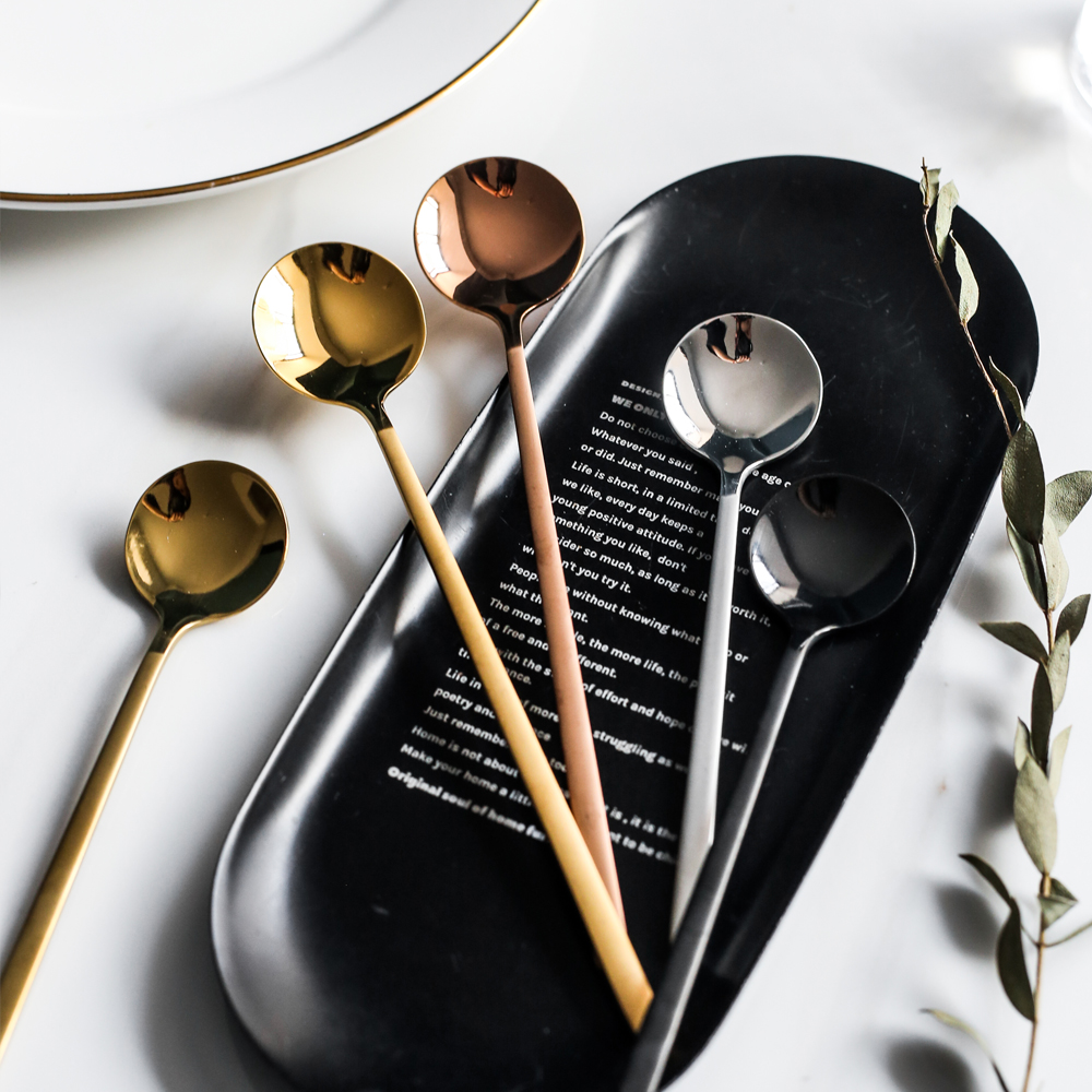 Golden short handle spoon golden long handle spoon black short handle spoon black long handle spoon rose gold short handle spoon rose gold long handle spoon silver short handle spoon silver long handle spoon