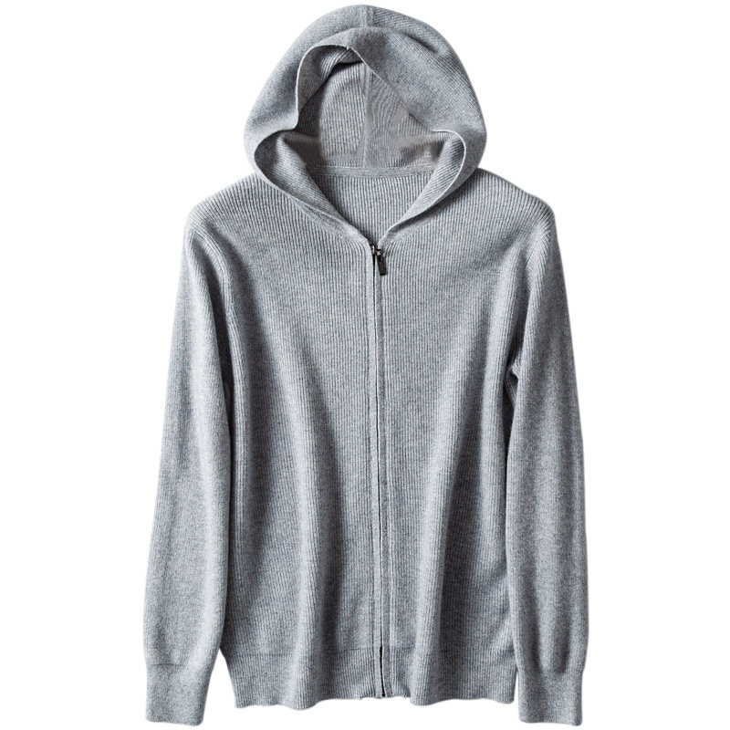 Cashmere hoodie men's cardigan autumn and winter 2021 new loose knitted cardigan with hood thickened hooded sweater jacket