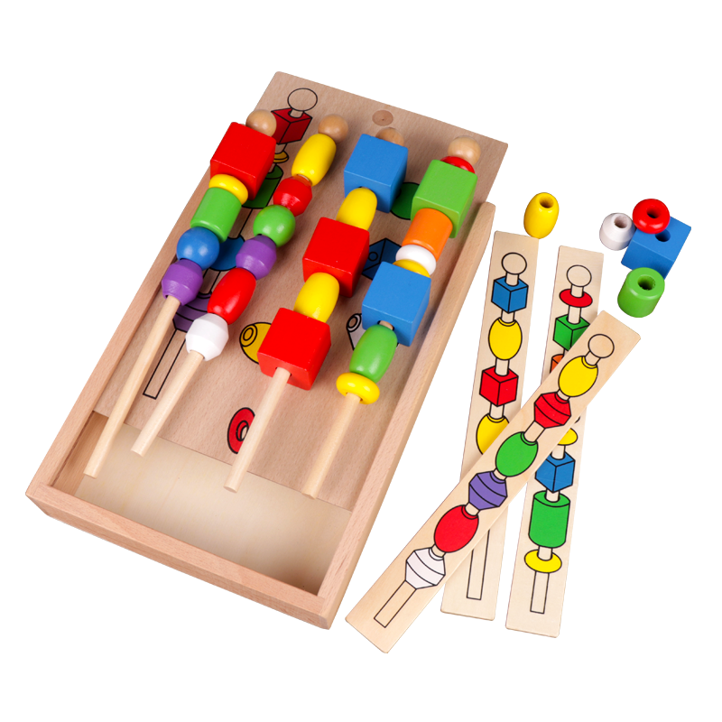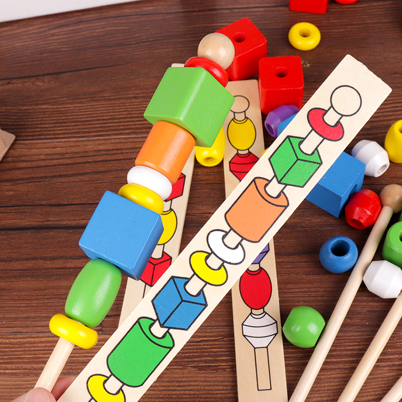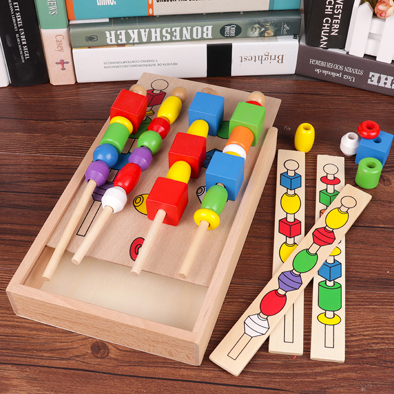 Montessori early education teaching aids 1-3-4 years old 5 children's puzzle beaded toy Montessori three-body six-color beading box