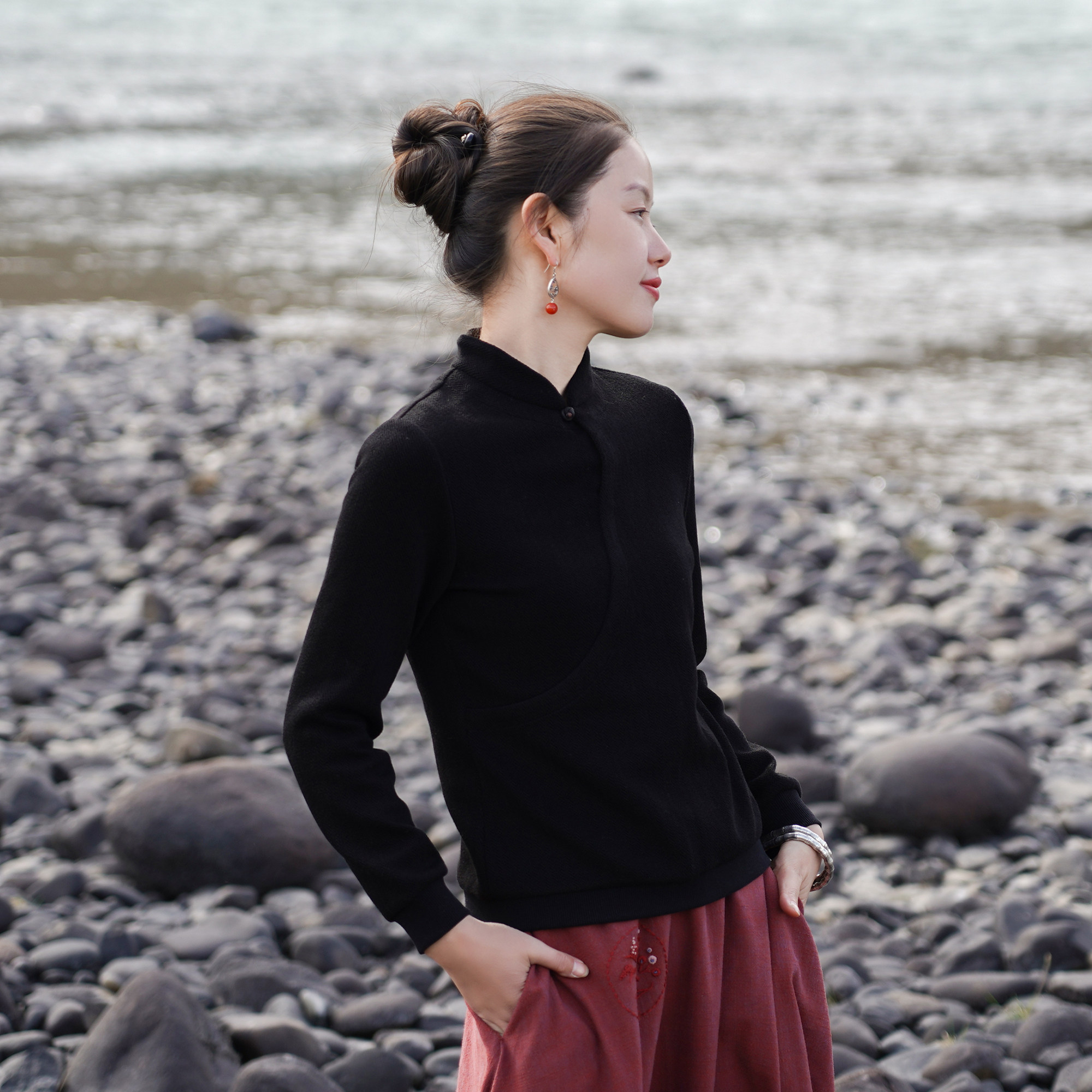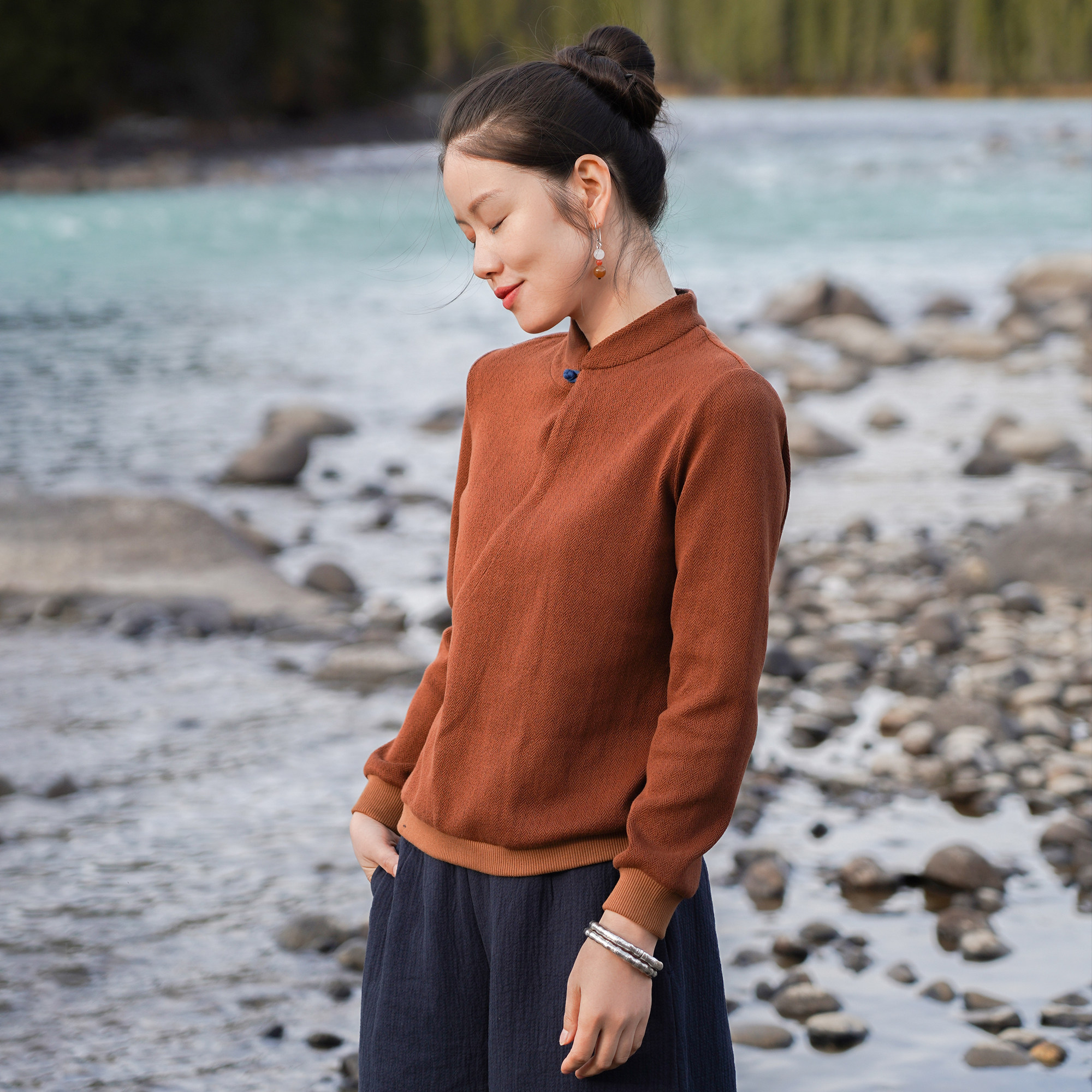 An all-you-can-go blue lapel (idle) cotton undercoat women's vintage sweater Joker long sleeve T-shirt jacket