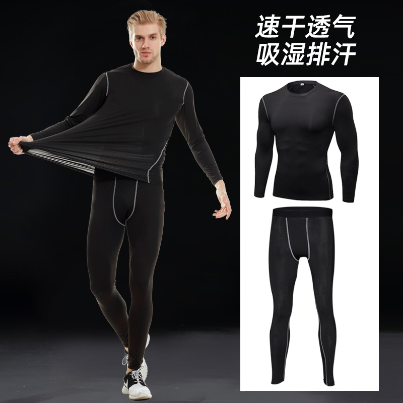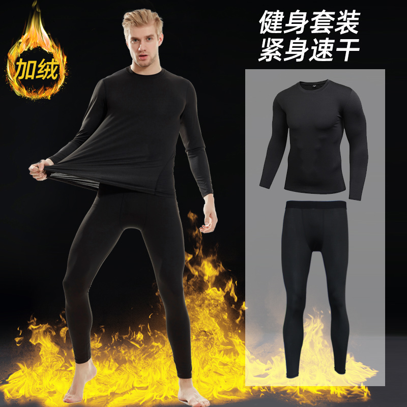 Winter sports tight clothes suit men's glint thickened long sleeves long pants to hit bottom elastic running speed dry training clothes