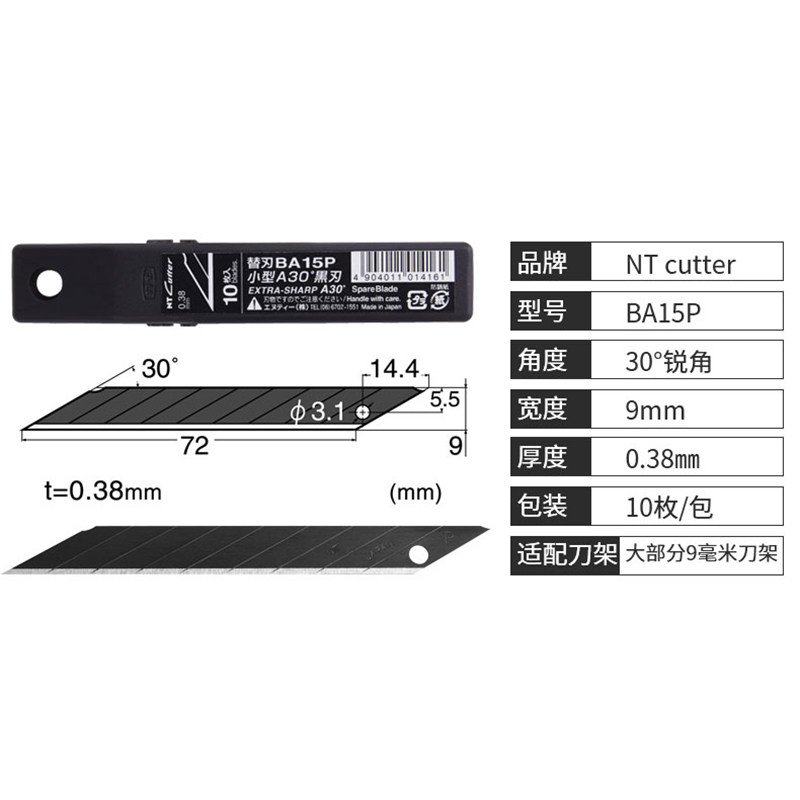 Japan imports NT CUTTER wallpaper blade 30° black blade BA15P utility knife blade durable industrial knife