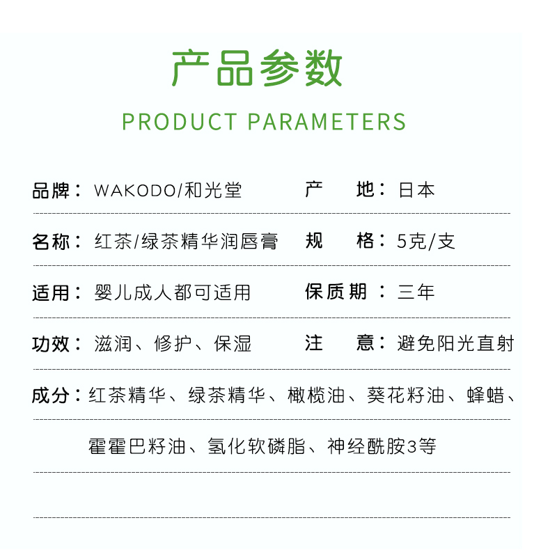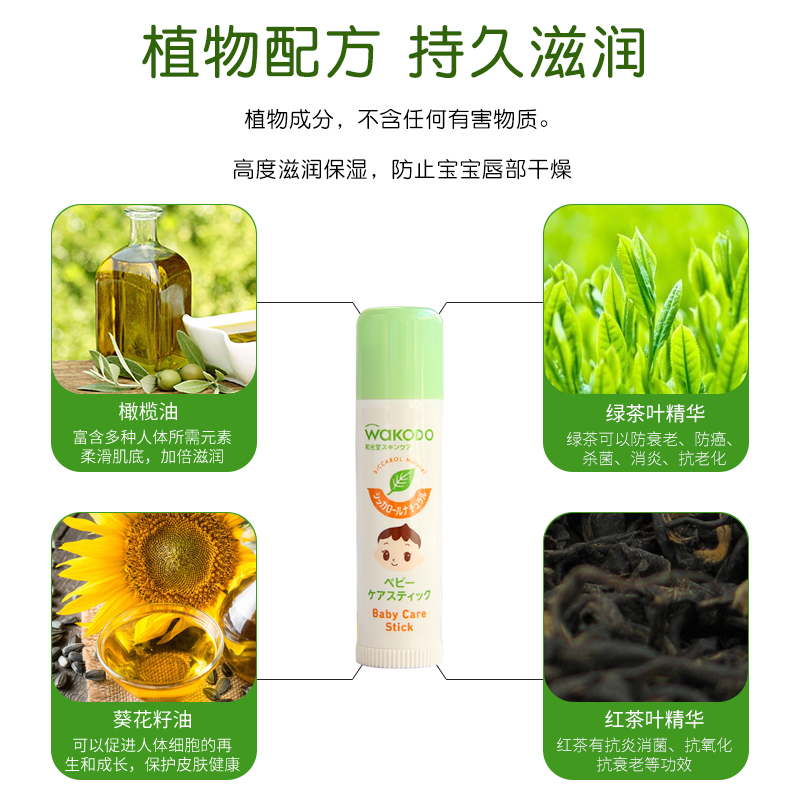 Japan's native Heguangtang children's lip balm safe anti-dry and cracked baby moisturizing green tea black tea lip balm